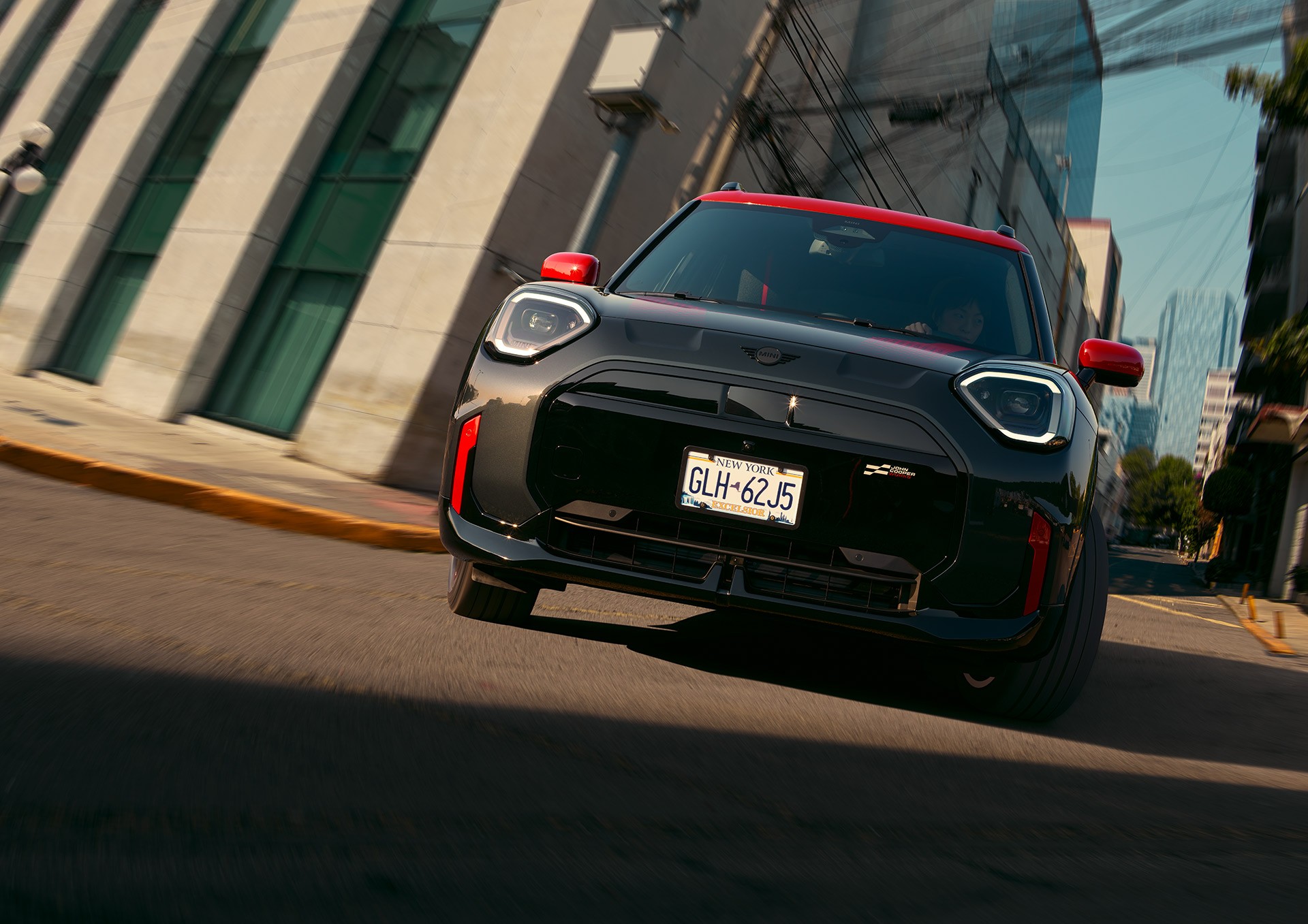 When you need a little more oomph, like when accelerating from a standstill, e-Power Boost augments the power of your all-electric MINI JCW Aceman. The starter motor jumps in to aid performance by supplying additional power. This lets you put your foot flat down and enjoy maximum driving dynamics
