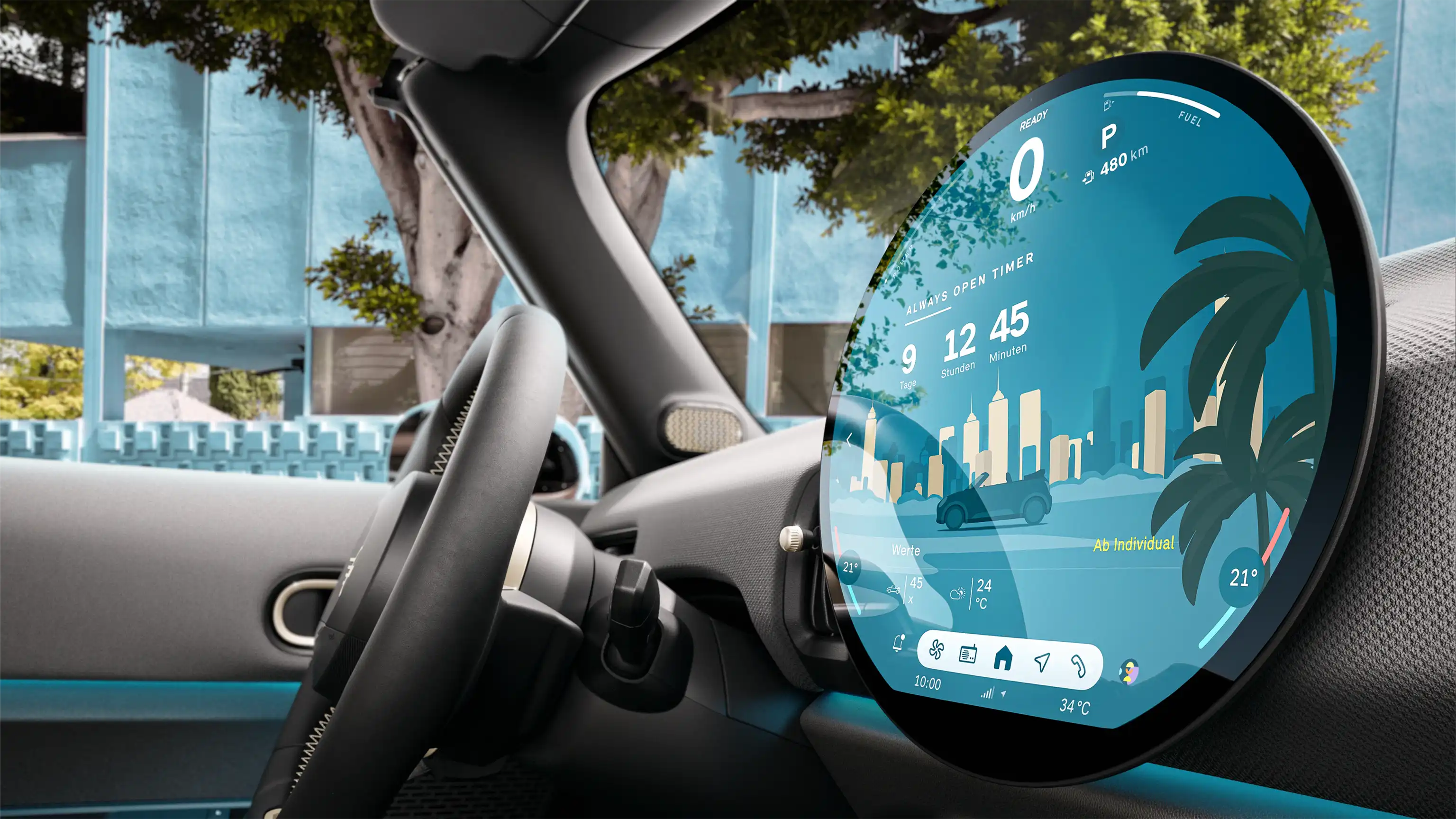 The iconic, 240 mm centre display in high-quality glass is your instrument cluster and onboard infotainment and assistance hub. It also happens to be the world's first-ever circular display.